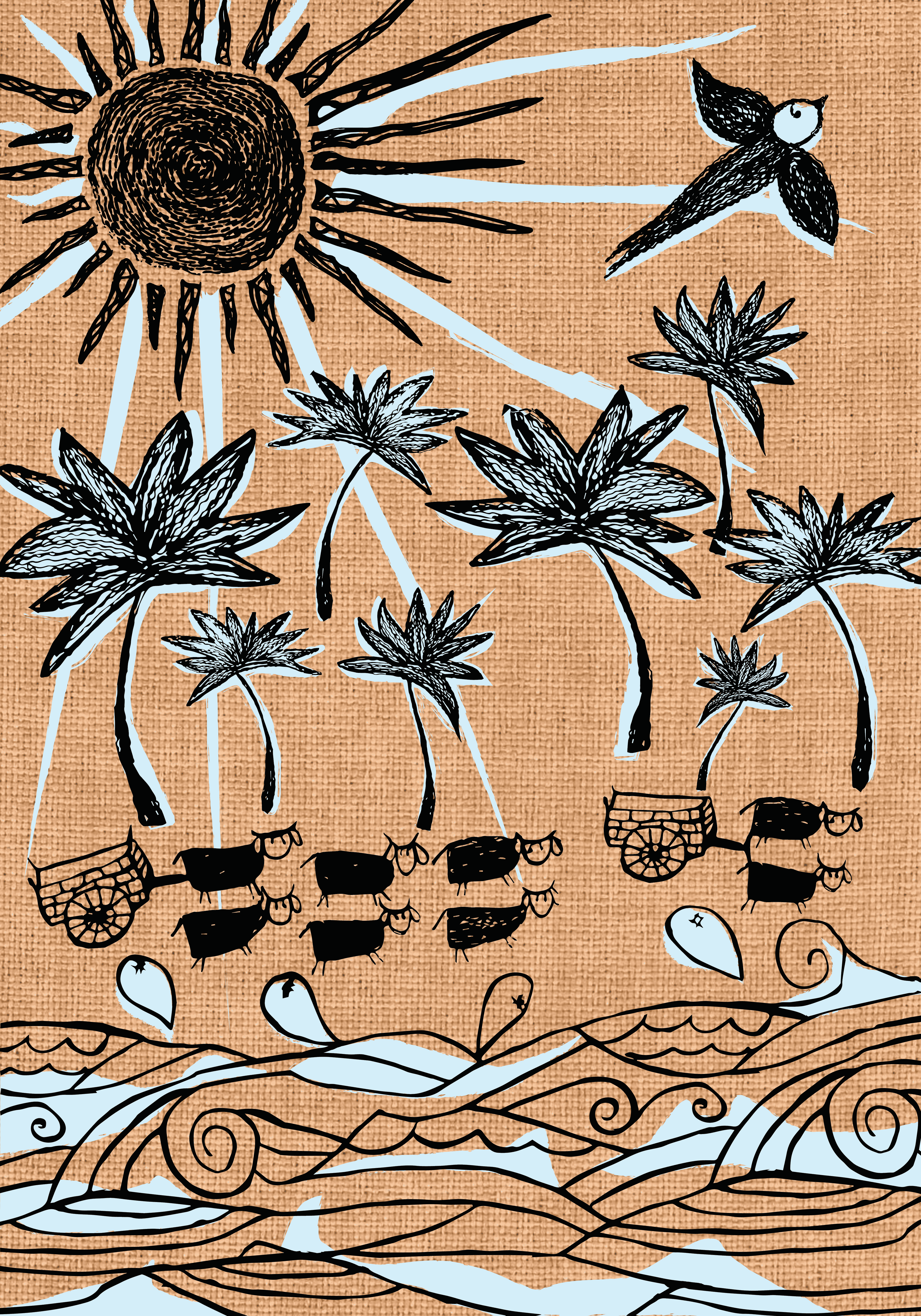 I worked as an extension of Ronaldo's creativity. Using his sketchbook, illustration, and runway clothes, I created all types of pieces, T-Shirts, fabric patterns, tote bags, promotional materials, you name it.