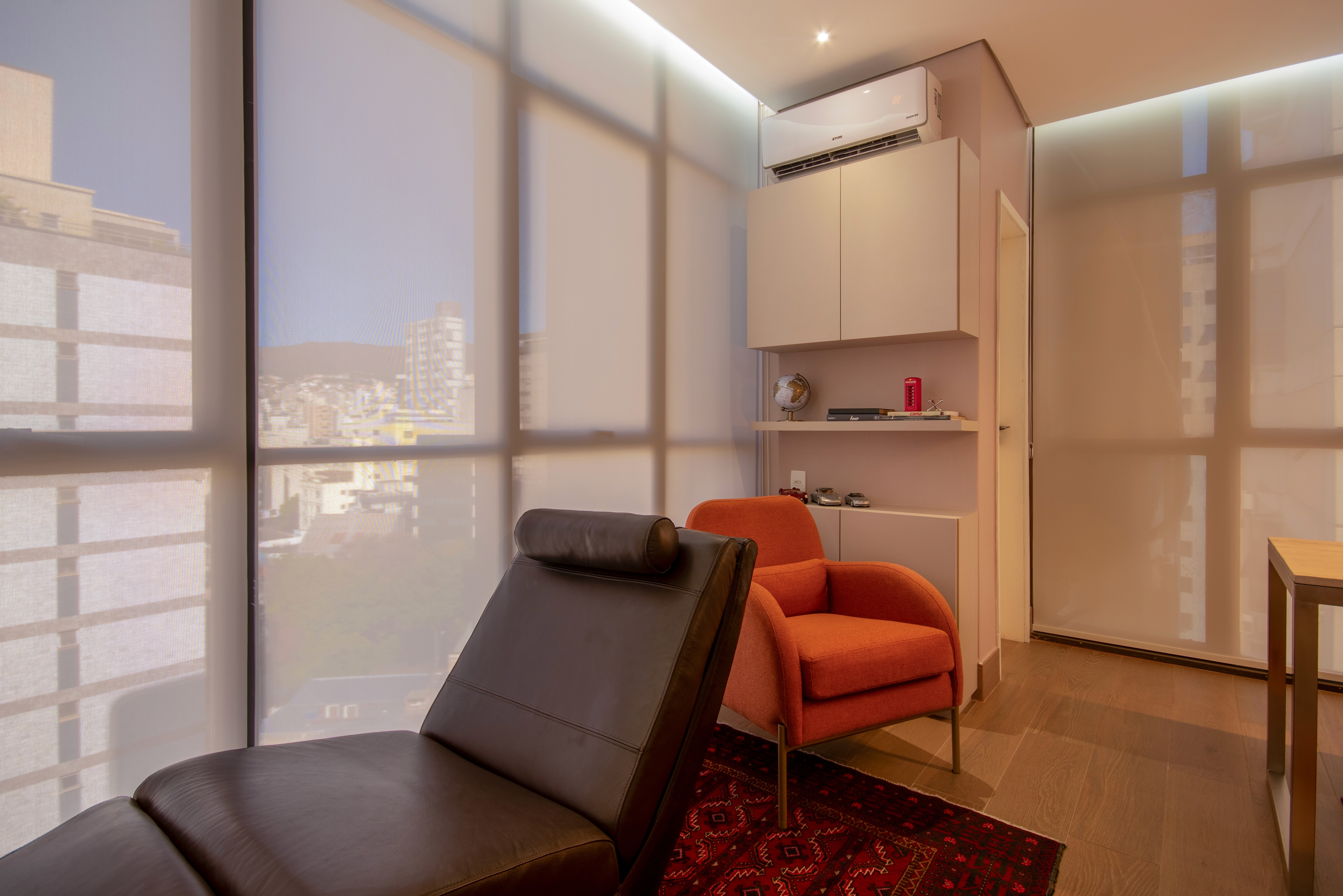 A psychologist's office with a calming and serine design for both clients and professional.